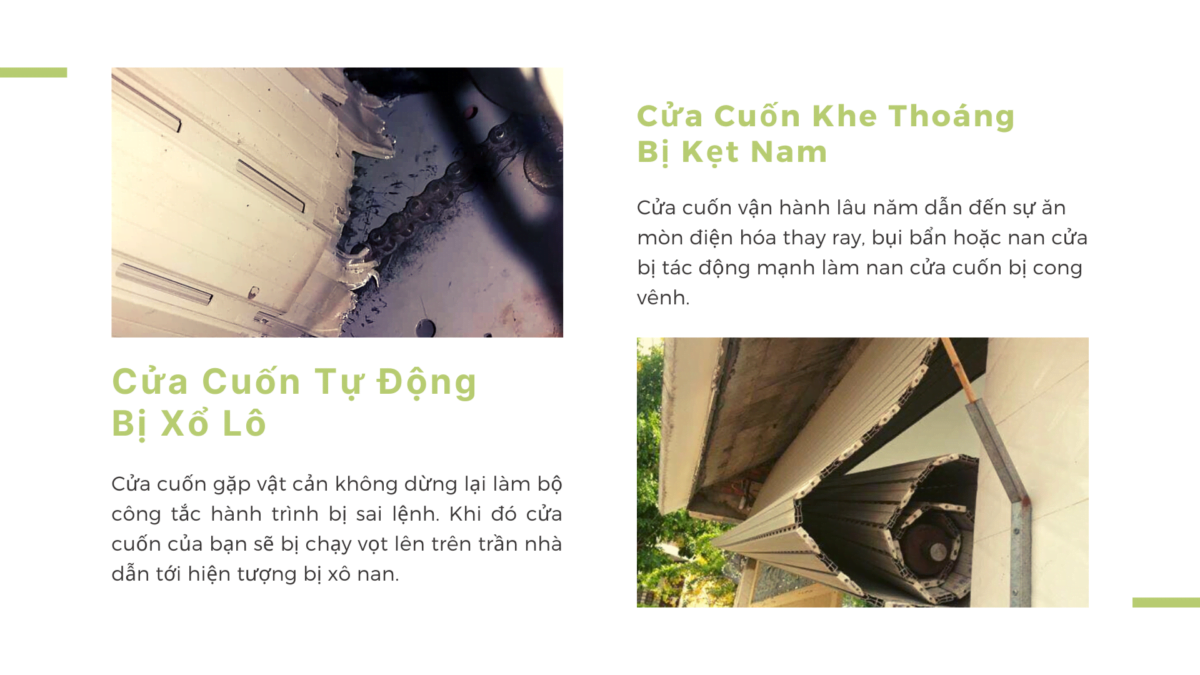 Ngoài việc mất nhiều chi phí cho việc sửa cửa cuốn bị kẹt do các nan cửa cuốn đã bị cong vênh không thể nào nắn lại được hoặc đã bị gãy làm cửa cuốn bị tuột khỏi đường ray rơi xuống làm bị thương các thành viên trong gia đình.